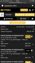 Hiç bir sebeb olmadan istanbulspor-Altay maçında aldığım Altay0.5 üst kuponumu iptal etti betandyou yatırım yapmadan önce dikkat edin şuan ne canlı desteğe bağlanabiliyorum nede kupon yapabiliyorum!!!!