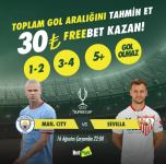 Sona Erdi M.City-Sevilla Toplam Gol Aralığı Yarışması | Doğru Tahmine 25 TL Freebet | BETPARK